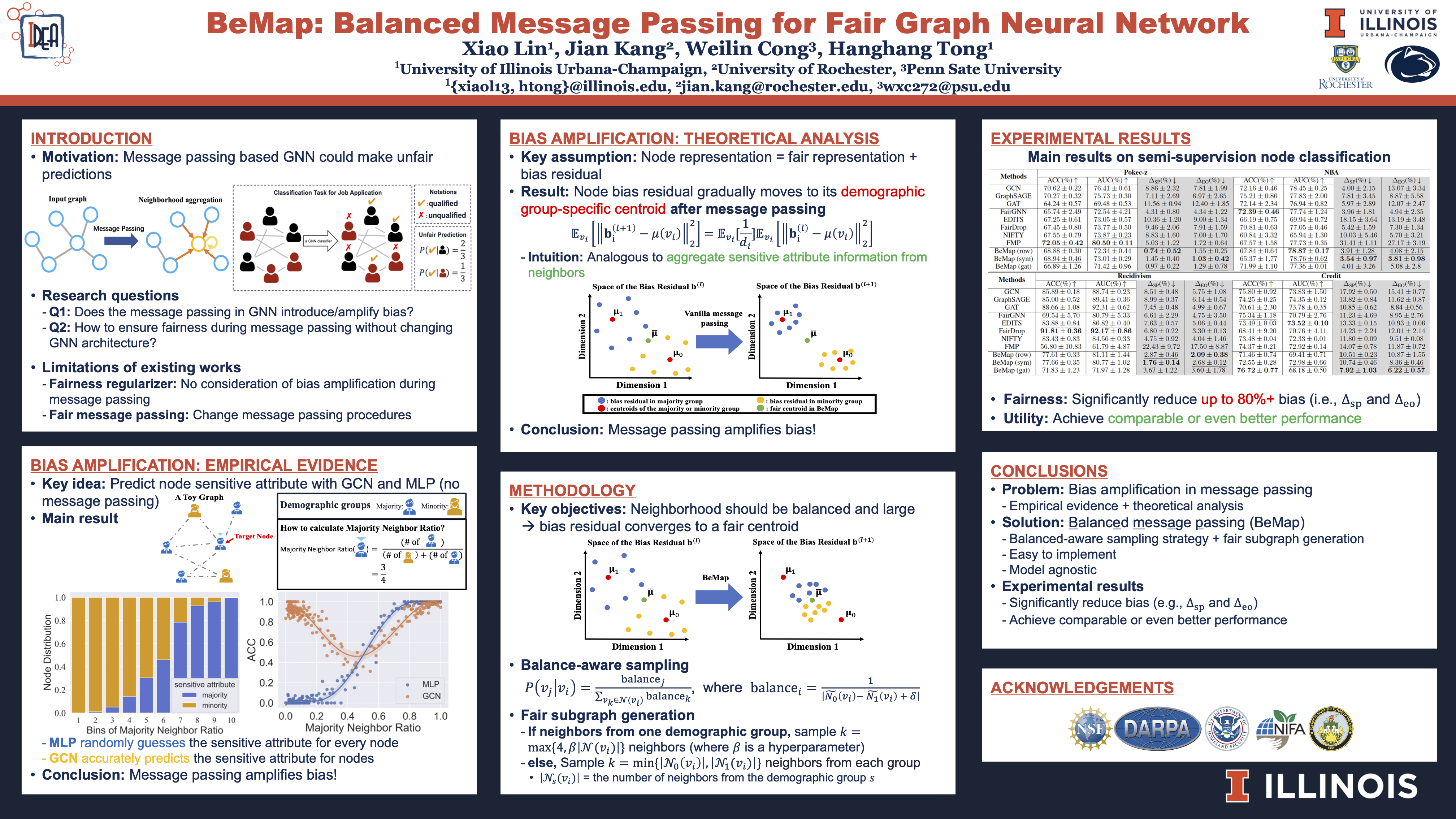 Abstract: Fairness in graph neural networks has been actively studied recently. However, existing works often do not explicitly consider the role of message passing in introducing or amplifying the bias. In this paper, we first investigate the problem of bias amplification in message passing. We empirically and theoretically demonstrate that message passing could amplify the bias when the 1-hop neighbors