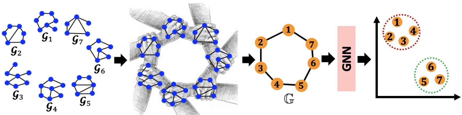 Abstract: Nowadays, graph neural networks (GNN) are the primary machinery to tackle (semi)-supervised graph classification tasks. The aim here is to predict classes for unlabeled graphs, given a collection of graphs with known labels.