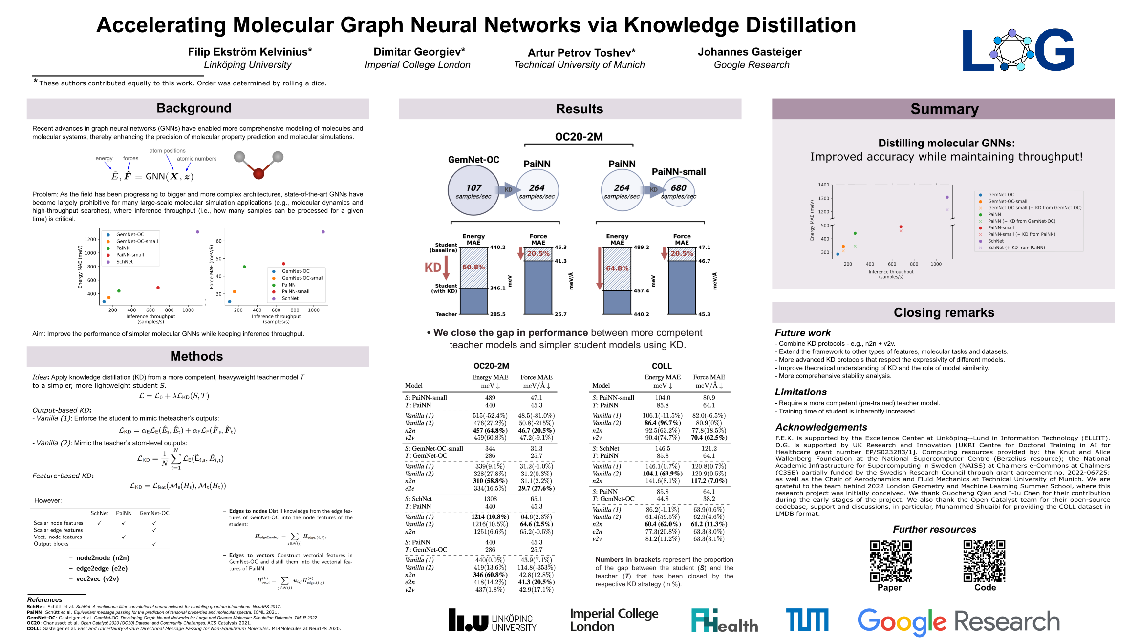 Keywords: GNN, graph neural networks, knowledge distillation, molecules, molecular simulations