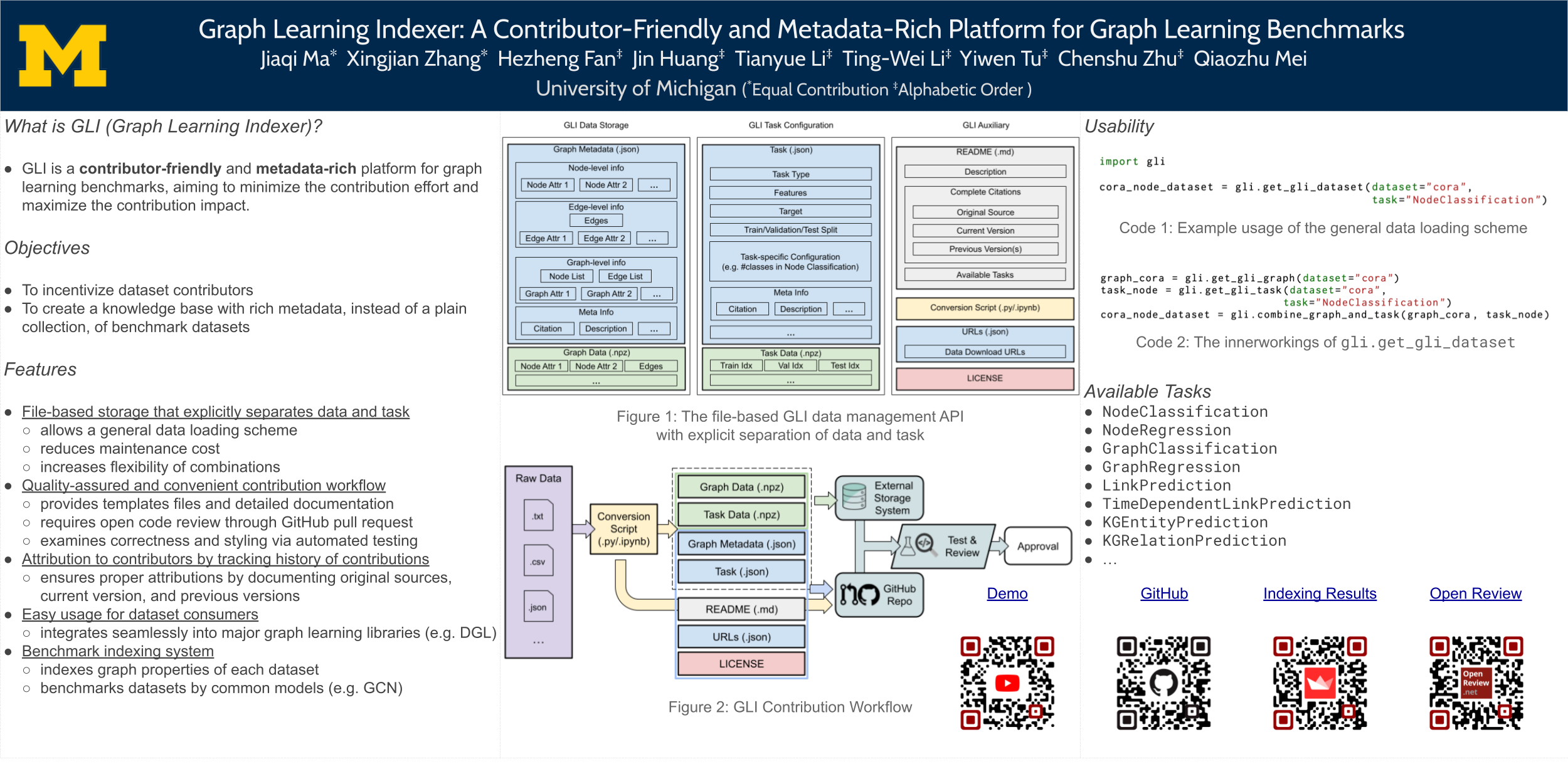 TL;DR: We introduce the design principles of Graph Learning Indexer (GLI), a contributor-friendly platform for better curation of graph learning benchmarks.