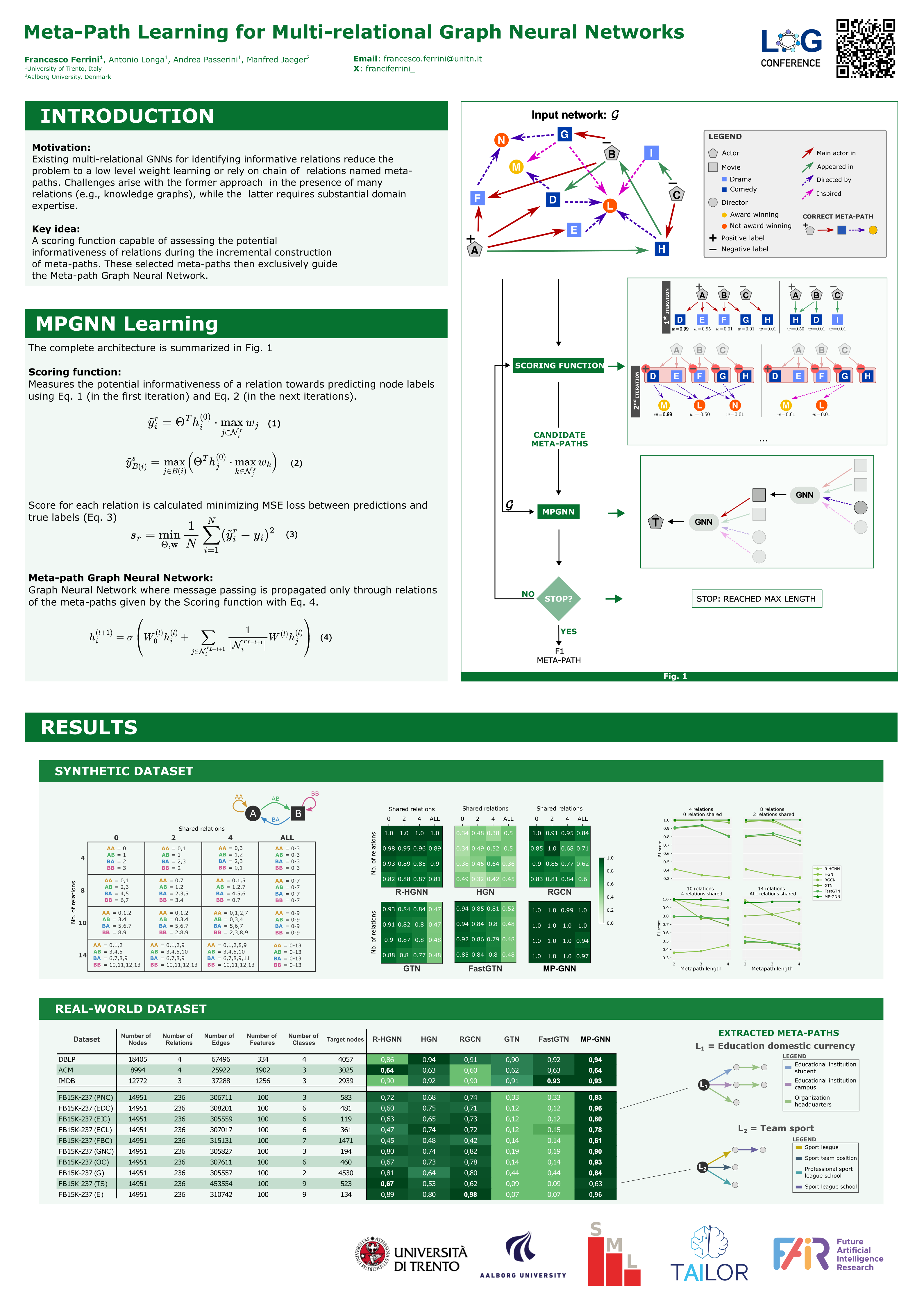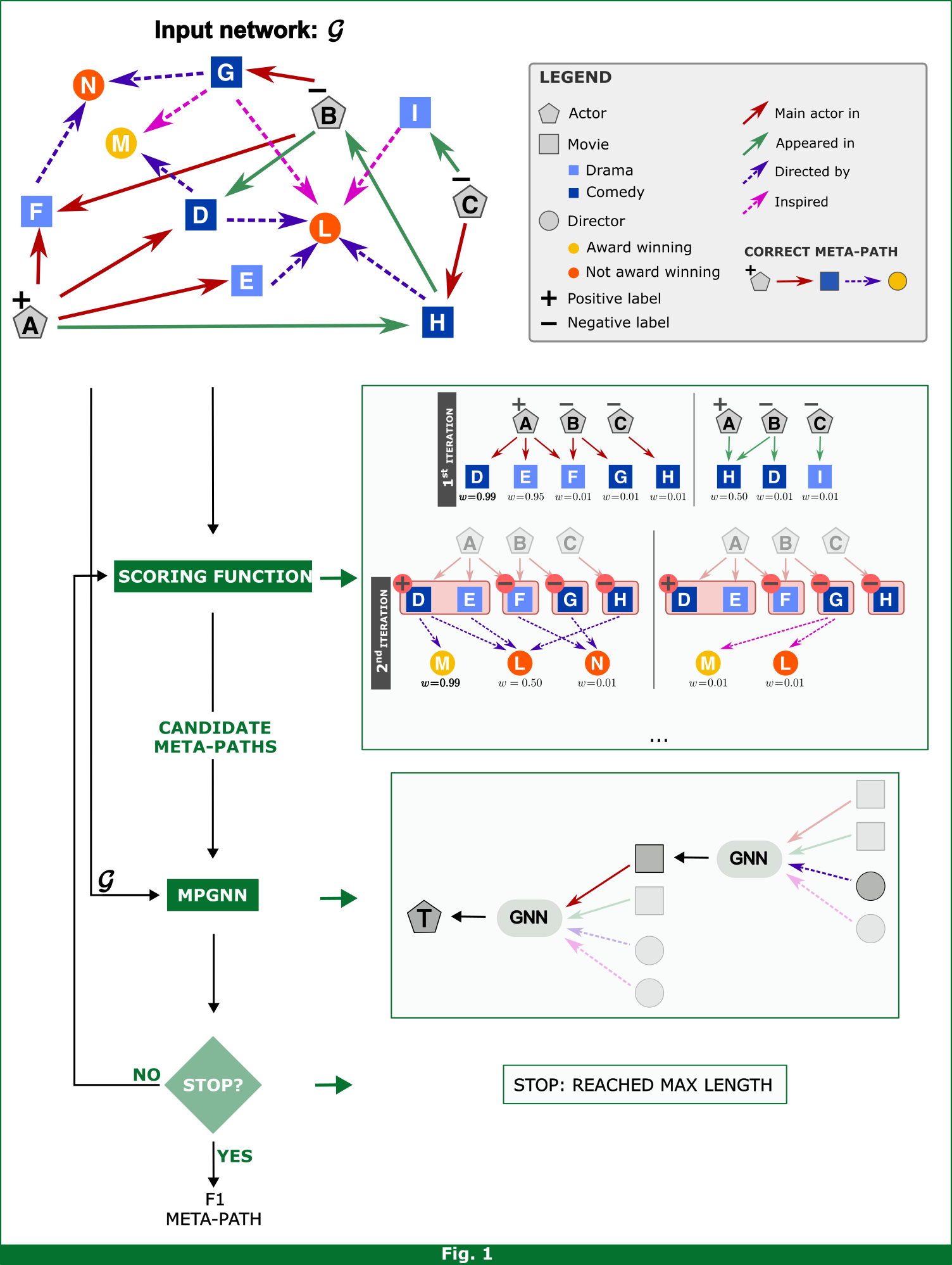 Abstract: Existing multi-relational graph neural networks use one of two strategies for identifying informative relations: either they reduce this problem to low-level weight learning, or they rely on handcrafted chains of relational dependencies, called meta-paths. However, the former approach faces challenges in the presence of many relations (e.g., knowledge graphs), while the latter requires substantial domain expertise to identify relevant meta-paths. In this work we propose a novel approach to learn meta-paths and meta-path GNNs that are highly accurate based on a small number of informative meta-paths. Key element of our approach is a scoring function for measuring the potential informativeness of a relation in the incremental construction of the meta-path. Our experimental evaluation shows that the approach manages to correctly identify relevant meta-paths even with a large number of relations, and substantially outperforms existing multi-relational GNNs on synthetic and real-world experiments.