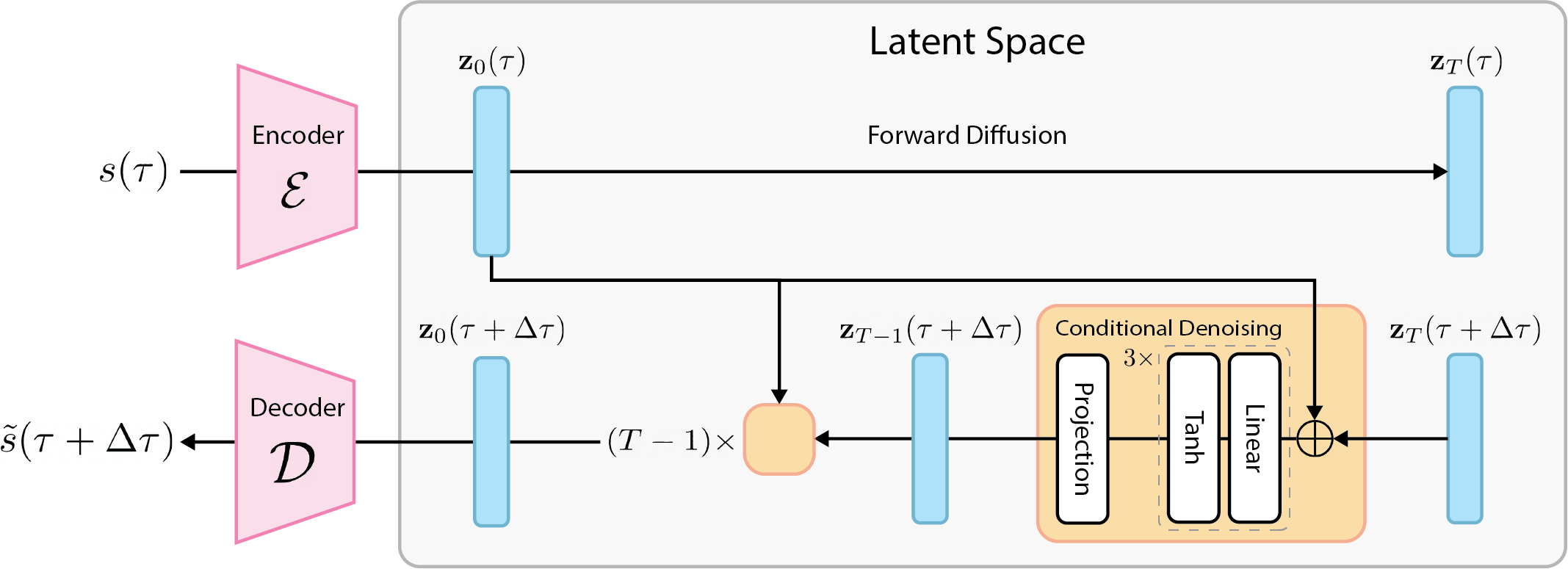 Abstract: Modeling the time-dependent evolution of electron density is essential for understanding quantum mechanical behaviors of condensed matter and enabling predictive simulations in spectroscopy, photochemistry, and ultrafast science. Yet, while machine learning methods have advanced static density prediction, modeling its spatiotemporal dynamics remains largely unexplored. In this work, we introduce a generative framework that combines a 3D convolutional autoencoder with a latent diffusion model (LDM) to learn electron density trajectories from *ab-initio* molecular dynamics (AIMD) simulations. Our method encodes electron densities into a compact latent space and predicts their future states by sampling from the learned conditional distribution, enabling stable long-horizon rollouts without drift or collapse. To preserve statistical fidelity, we incorporate a scaled Jensen-Shannon divergence regularization that aligns generated and reference density distributions. On AIMD trajectories of liquid lithium at 800 K, our model accurately captures both the spatial correlations and the log-normal-like statistical structure of the density. The proposed framework has the potential to accelerate the simulation of quantum dynamics and overcome key challenges faced by current spatiotemporal machine learning methods as surrogates of quantum mechanical simulators.