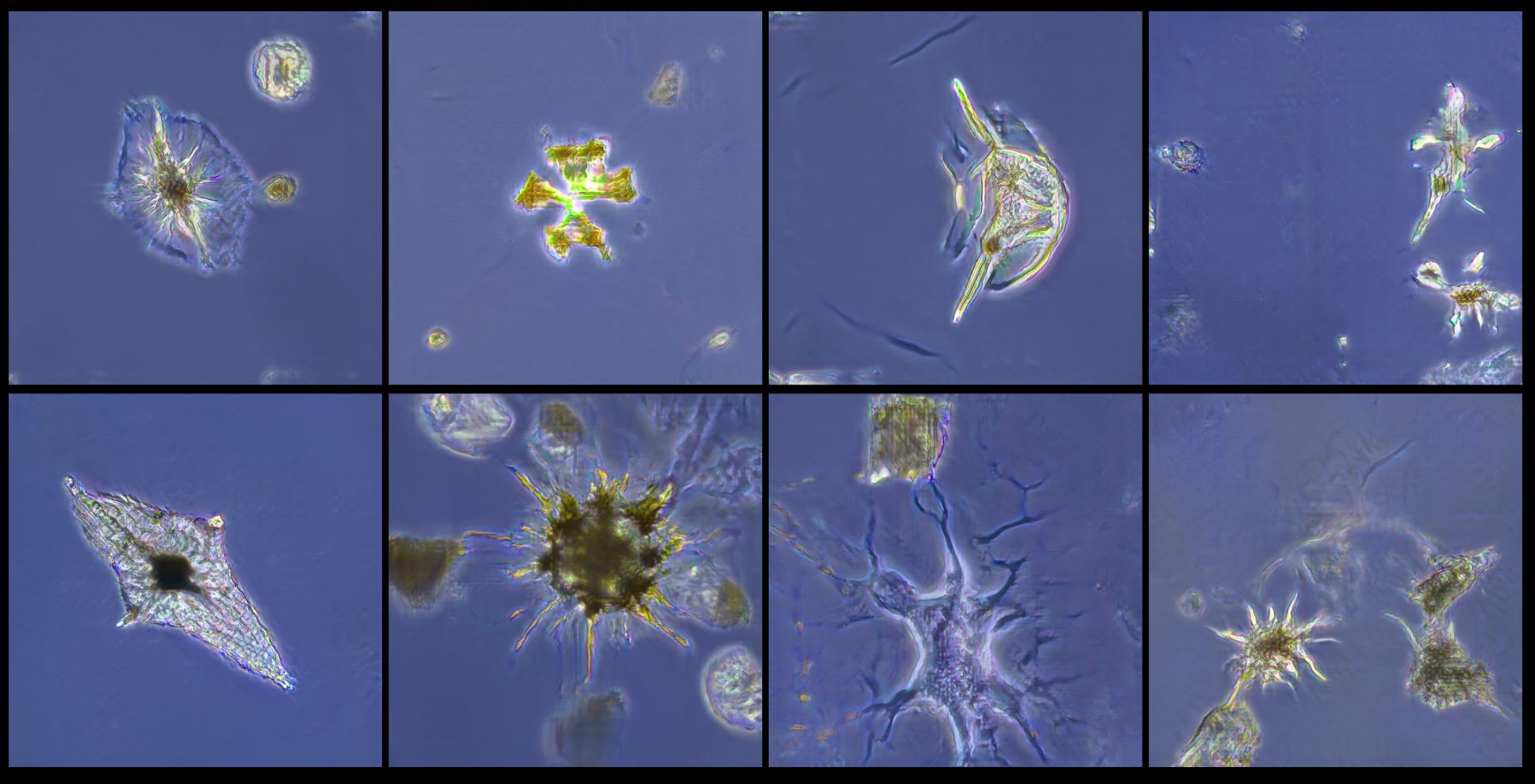 Abstract: The Digital Plankton is a physical object installation exploring the life of virtual plankton creatures deployed on-board of a small computing device. The installation shows generated footage on the Raspberry Pi with an embedded display. It is a spiritual continuation of the so-called Evolved Virtual Creatures presented by Karl Sims in 1994 - there, a genetic evolutionary algorithm was used to create rule-based grid-based controls for simple virtual bodies of creatures which were conditioned to move. Our work uses neural networks and learning from data rather than depending on explicitly written rules (such as the goal to "move the furthest" in a simulated environment). As such the inhabited space is continuous rather than discrete (up until the point of resolution given by float32). We present a play on hybridisation as our synthetic plankton shapes live on a physical real-world object, which is exhibited and can be interacted with. As for the theme, humanity could learn from plankton, as one of the oldest species which has lived through evolving climate conditions over billions of years - speculatively, if we consider more than human intelligence, it may even outlive us.